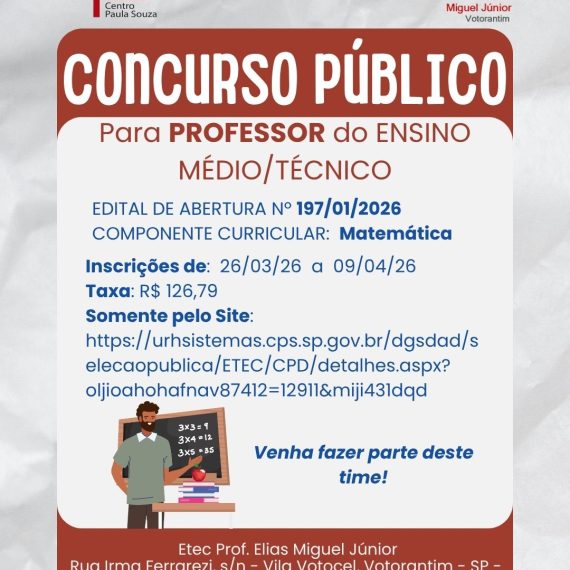 Estão abertas as inscrições para o concurso de Professor do Ensino Médio/Técnico – Matemática, uma chance de integrar uma instituição reconhecida e contribuir com a formação de novos profissionais.